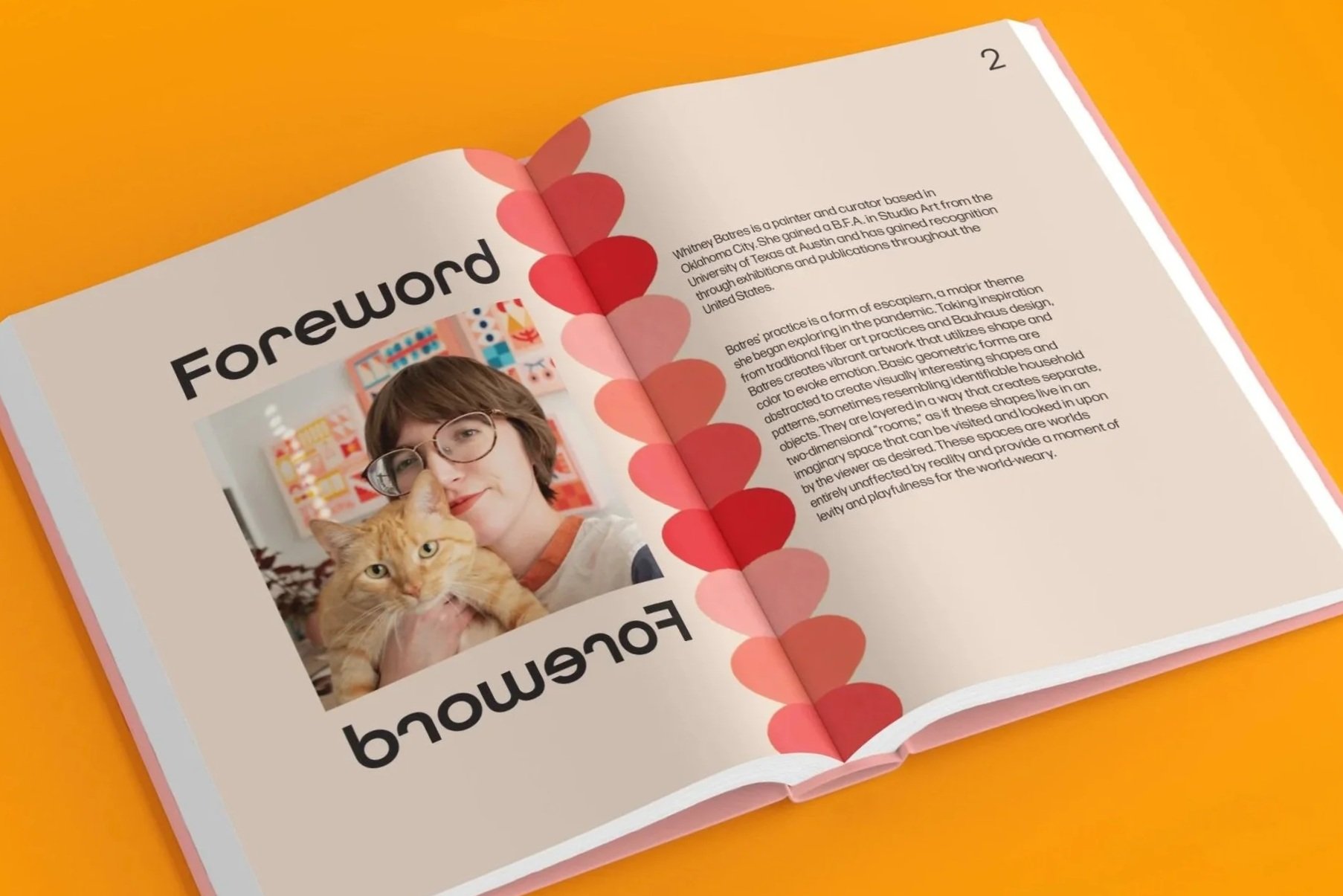 This is a coffee-table art book designed for the OKC artist Whitney Batres. This book focuses on Whitney's ability to create fun, clean, sectioned-off paintings by using minimalistic design.